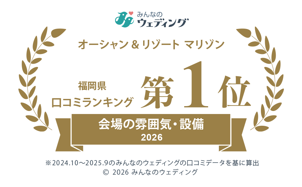 オーシャン&リゾート マリゾンは、アジア都市景観賞や都市景観百選など数々の景観賞を受賞した、海辺の街「百道浜」の海に浮かぶ、都心に近いリゾートアイランドです。大人数での華やかなパーティから、ご家族やご友人中心の少人数ウエディング、ペットと一緒の結婚式まで、おふたりの想いに寄り添い、自由なスタイルで結婚式を叶えられる点も、今回の高評価につながった理由の一つだと感じております。